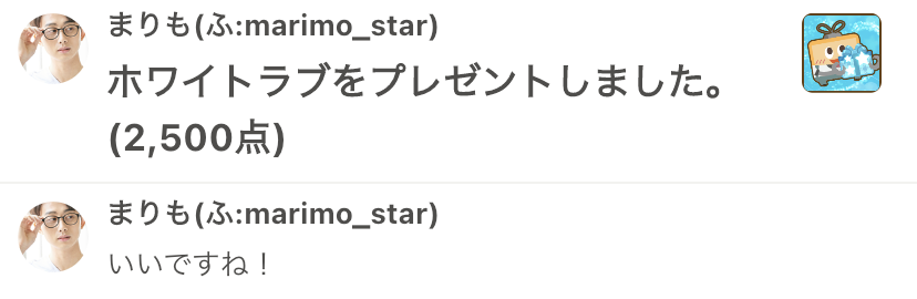 ブルーのギフトを配信中に視聴者に対して使うと、視聴者に運営から抽選でふわっちポイントがプレゼントされます。